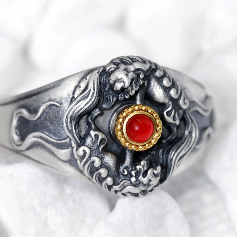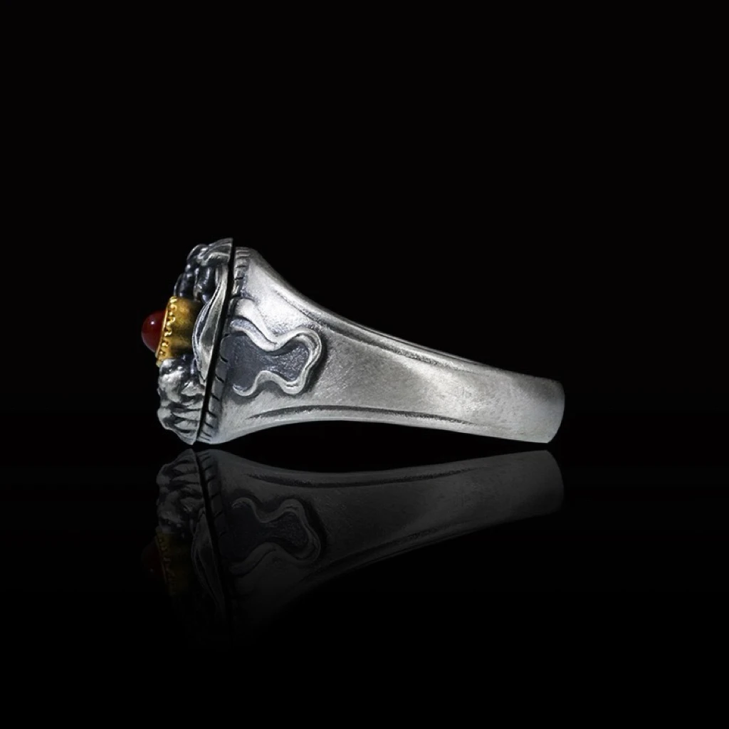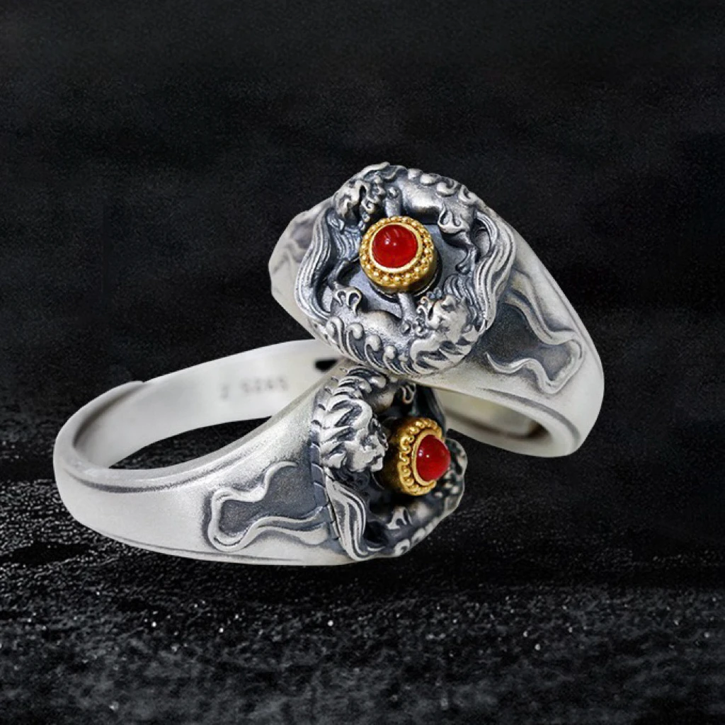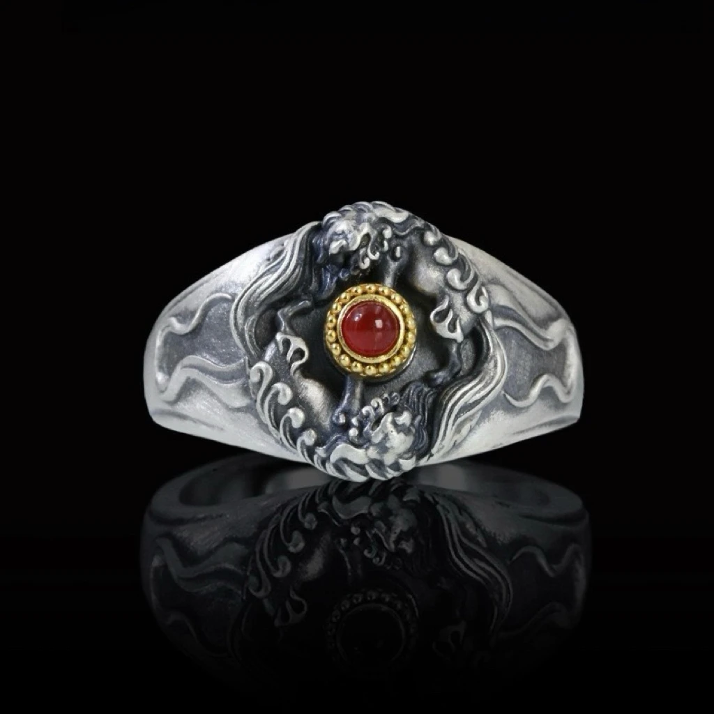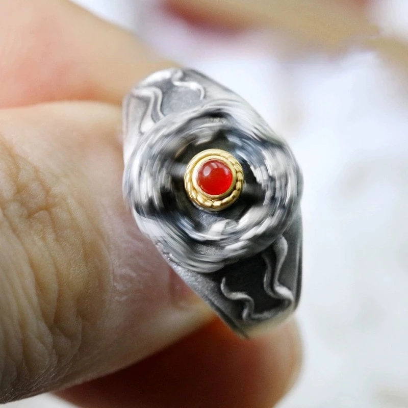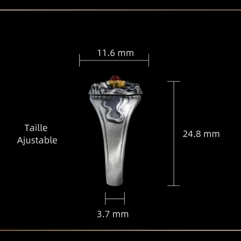 🏔️ Représentant la robustesse et l’audace, l’image d’un lion dominant les monts enneigés symbolise la majesté et la résilience. La partie supérieure rotative de la bague ajoute un élément kinétique, symbolisant le mouvement continu de l’énergie vitale et offrant un effet anti-stress tangible.