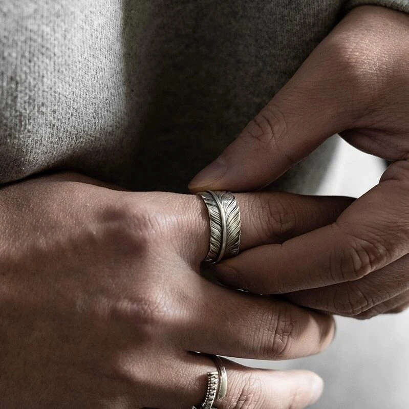 💎 Conçue avec soin, cette bague présente un design en forme de plume délicat, ajoutant une touche de subtilité et de sophistication à votre look. Sa taille ajustable assure un confort optimal pour chaque homme.