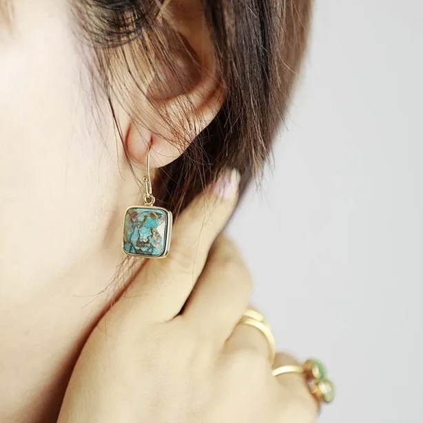 🌐 Chaque boucle d’oreille, de forme carrée et mesurant 32*32 mm, est une fenêtre ouverte sur le ciel, une pièce unique qui évoque la sagesse et la sérénité des espaces infinis. La turquoise, connue pour ses propriétés de protection, crée un pont entre le ciel et la terre, offrant un symbole fort pour celui ou celle qui la porte.