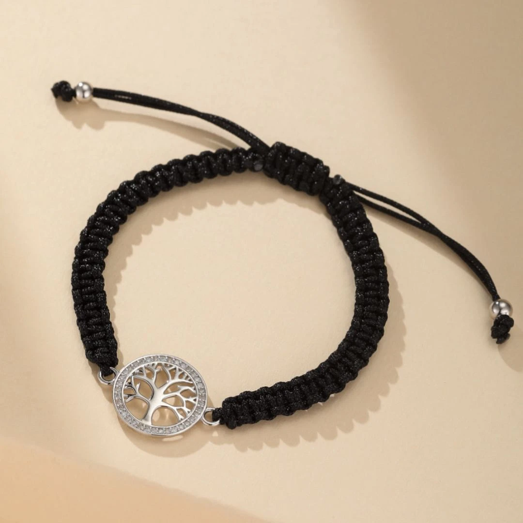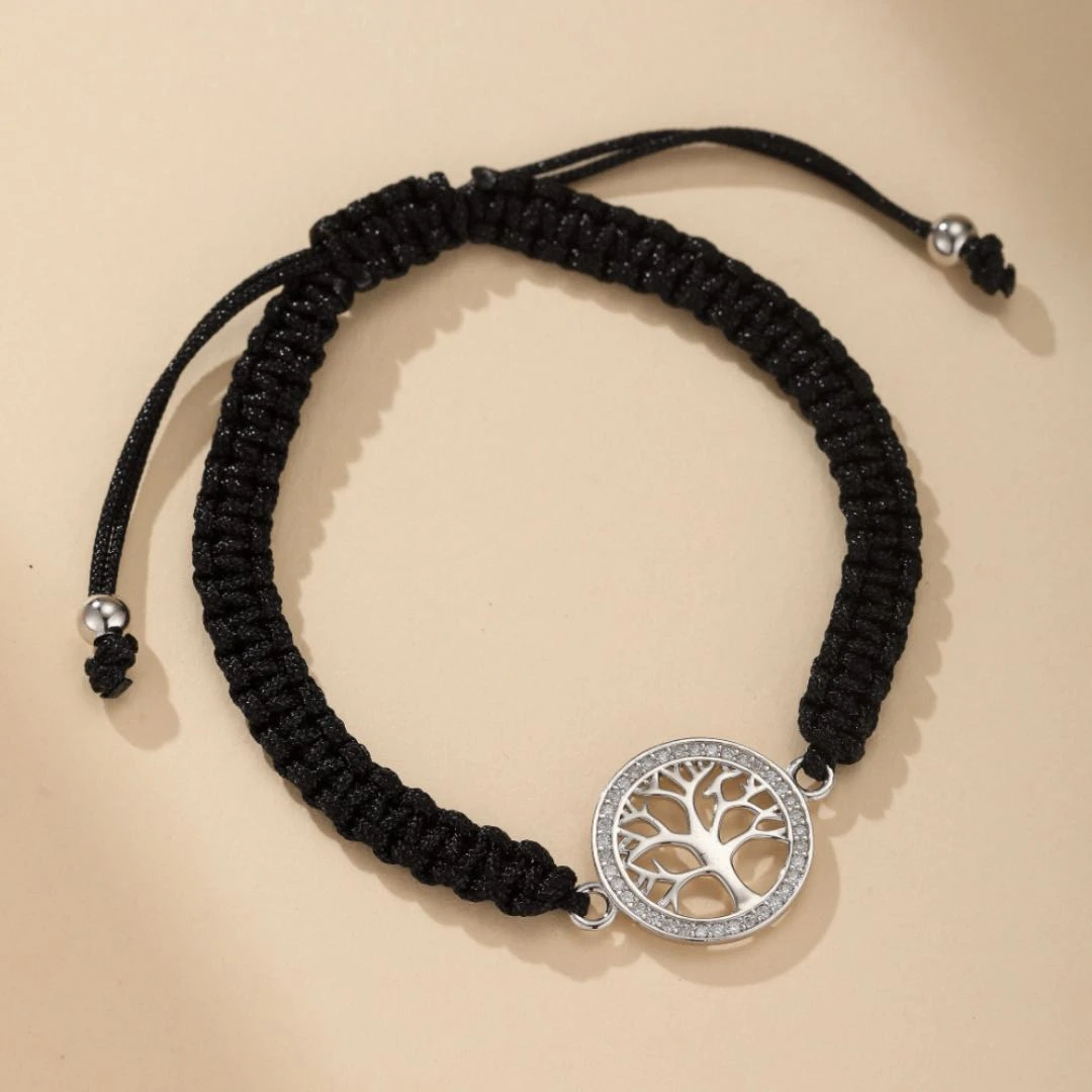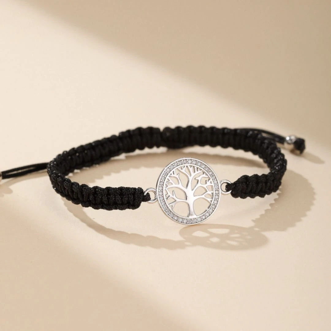 💎 Le médaillon en argent représente l’Arbre de Vie, entouré de zircons qui apportent une touche d’éclat subtil. Ce bracelet tressé incarne l’équilibre entre spiritualité et modernité, parfait pour ceux qui recherchent un bijou à la fois symbolique et tendance.