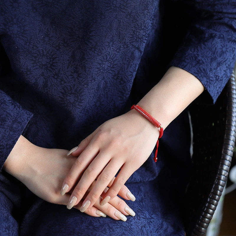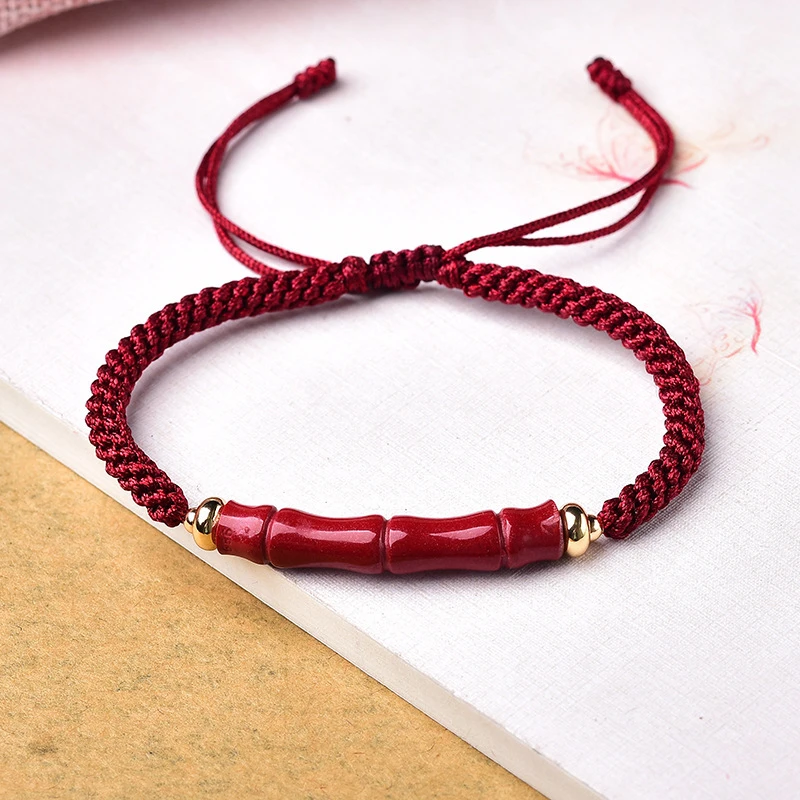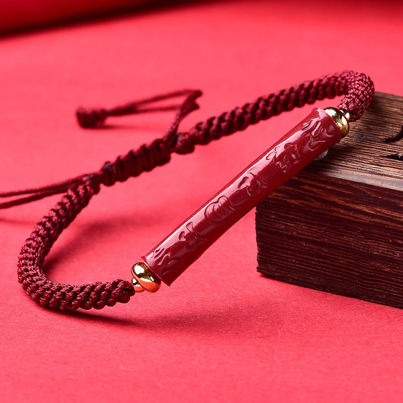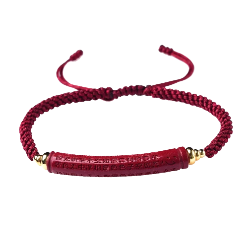 Le bracelet « Élégance Asiatique » est fabriqué en Fil rouge, avec au centre, l’élégante pierre Cinabre de couleur rouge cerise. Sur cette pierre sont gravés le texte de Sūtra du Cœur, qui fait ressortir votre sagesse. Ou simplement dans la forme de Bamboo, qui vous apporte la paix et la force intérieure.