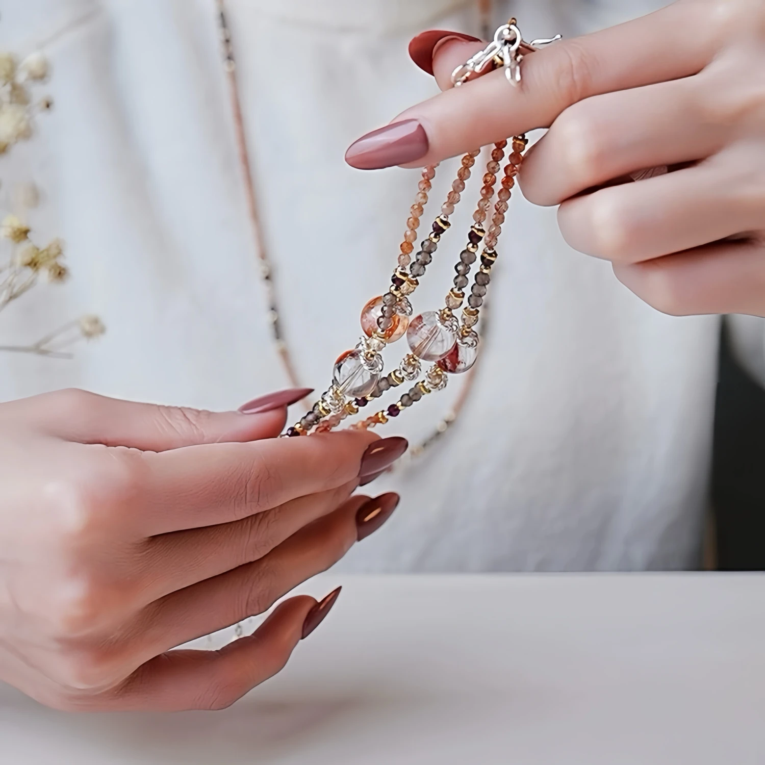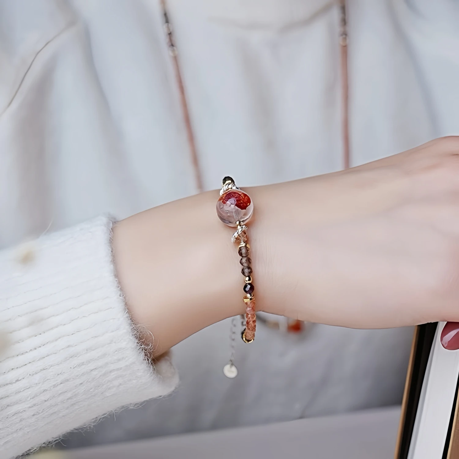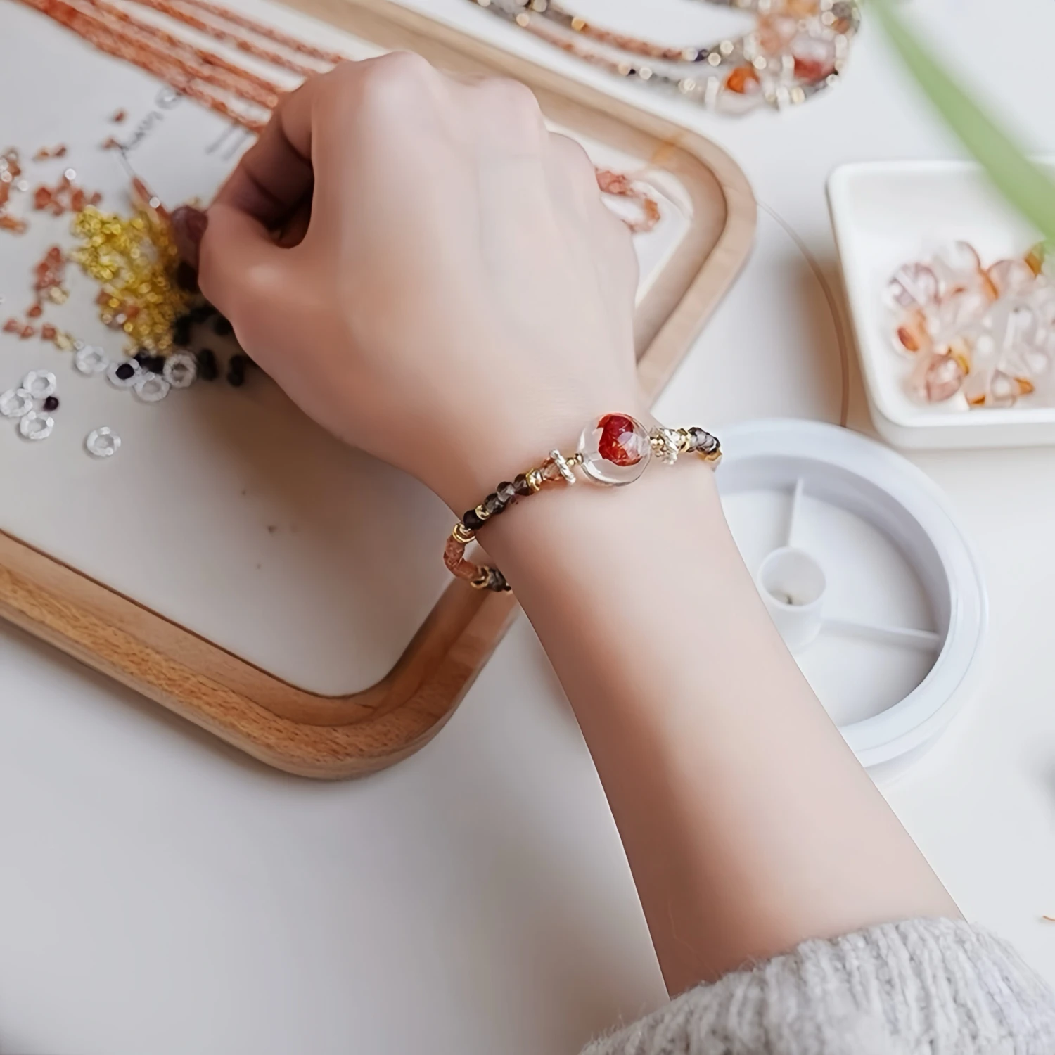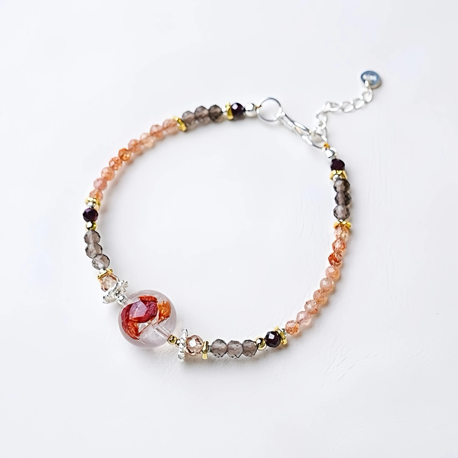- Pierre : pierre de soleil, obsidienne glacée, grenat, cristal