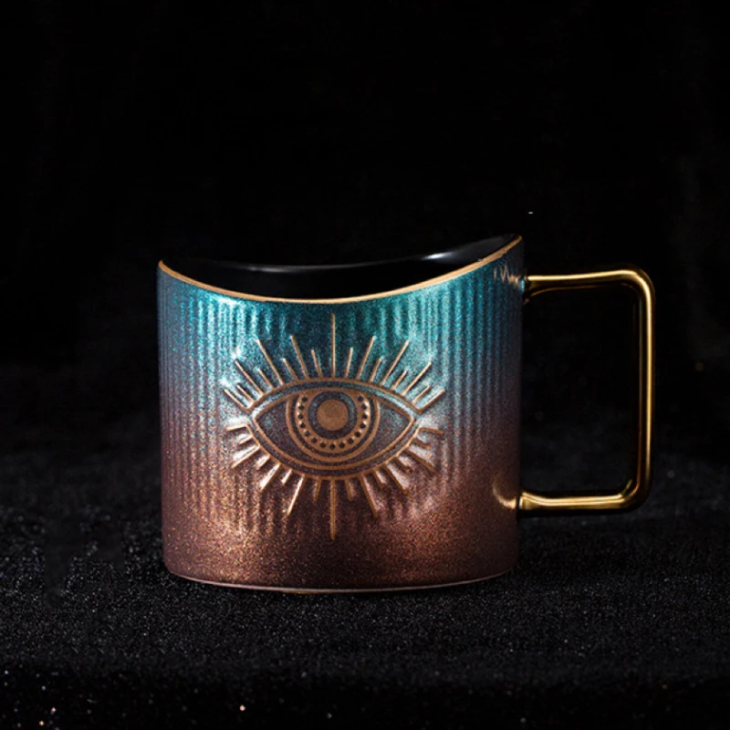 🔮 Fabriquée en céramique de haute qualité, cette tasse de 9*13,5 cm et d’une capacité de 420 ml présente un motif d’œil doré, représentant la vigilance et la protection. Disponible en plusieurs couleurs vibrantes, chaque tasse est ornée d’une poignée dorée, ajoutant une touche de luxe et de sophistication à votre routine quotidienne.